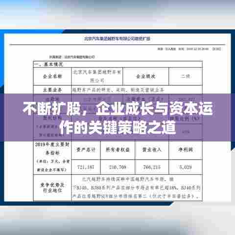 在当今经济快速发展的环境下,企业面临着巨大的竞争压力,为了保持竞争力并实现持续发展,许多企业选择了一种重要的策略:不断扩股,扩股不仅能帮助企业筹集资金,还能优化企业结构,增强企业的综合实力,本文将详细探讨不断扩股对企业成长与资本运作的重要性。