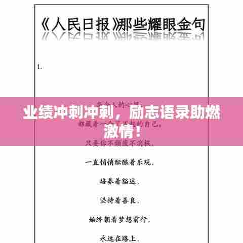业绩冲刺是一场充满挑战的征程,我们要勇往直前,坚持不懈地努力追求自己的目标和梦想,让我们牢记这些简短励志的语录不断激励自己努力向前不断超越自我创造更加辉煌的业绩!