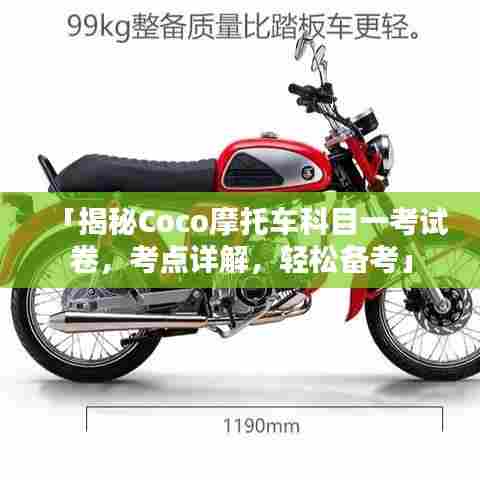 随着交通工具的日益普及,摩托车作为一种便捷的交通工具,受到了广大民众的喜爱,驾驶摩托车的考试,也就是我们通常所说的摩托车驾照考试,也成为了许多人关注的焦点,本文将详细介绍关于“coco摩托车科目一考试卷”的相关内容,帮助考生更好地进行备考。