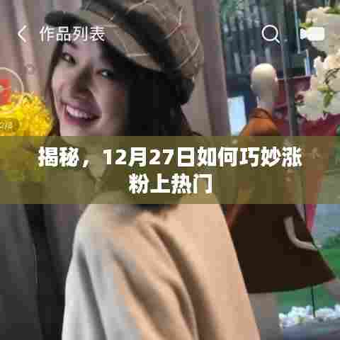 随着互联网的普及,社交媒体成为了人们生活中不可或缺的一部分,无论是个人品牌、企业还是创作者,获取粉丝和关注度都是一项重要的挑战,本文将为你揭示在12月27日这个特殊时段,如何巧妙涨粉上热门,让你的声音被更多人听到。