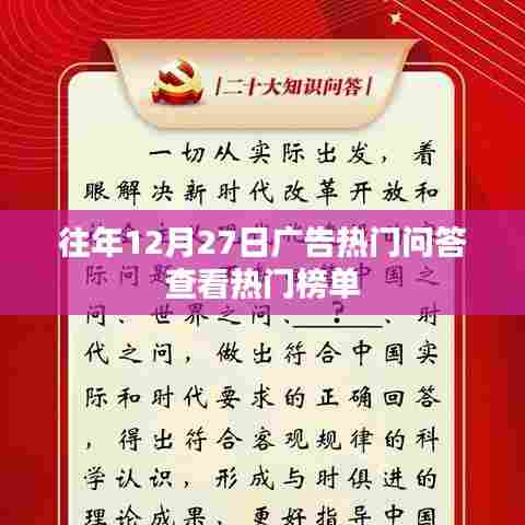 随着互联网的普及和科技的飞速发展,广告行业也在不断地创新变革,每年的12月27日,众多广告领域的热门话题和问答都会成为关注的焦点,本文将带领大家回顾往年12月27日的广告热门问答,并一起查看热门榜单。