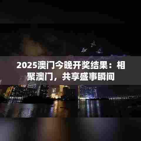 今晚“2025澳门开奖结果:相聚澳门,共享盛事瞬间”这一选题吸引了众多目光,它不仅是关注澳门文化和旅游活动的一个窗口,也是研究澳门作为国际交流平台的一个绝佳机会。