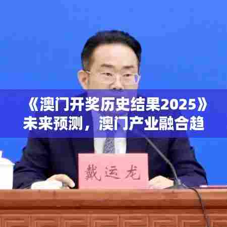 《澳门开奖历史结果2025》未来预测不仅仅关注于博彩业,而是以宏观的视角审视澳门的产业格局。书籍的核心在于探讨和预测2025年时,澳门各个产业融合的趋势和可能产生的联动效应。在此篇说明文中,我们将深入剖析文献中对澳门未来产业融合全面的预测与分析。