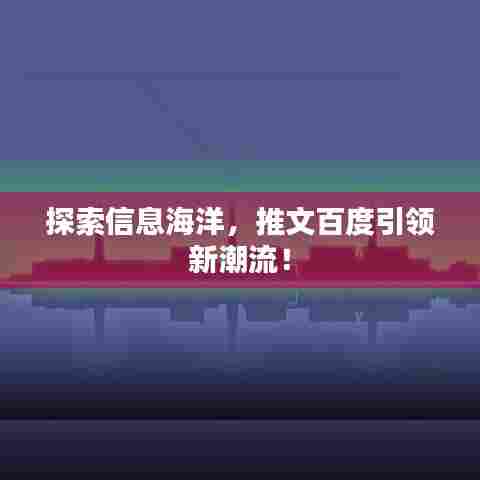 随着互联网的普及和科技的飞速发展,搜索引擎已成为我们日常生活中不可或缺的工具,百度作为中国最大的搜索引擎,已经深深地融入到我们的日常生活中,而“推文百度一下”这一组合,更是为我们探索信息海洋带来了新的方式。