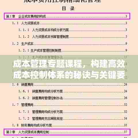 在现代企业经营环境中,成本管理已成为企业生存与发展的核心要素之一,面对激烈的市场竞争和不断变化的经营环境,如何有效地进行成本管理,提高经济效益,成为企业关注的焦点,本文将围绕“成本管理专题课”展开,探讨课程的主要内容及其在企业管理中的重要性。