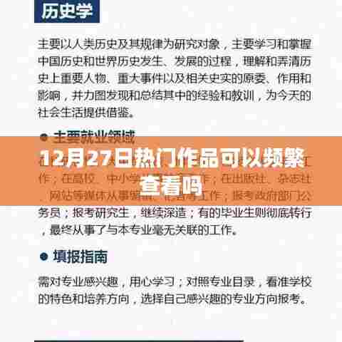 随着互联网的普及和科技的飞速发展,如今的社会已经离不开各种数字平台和社交媒体,在这样的时代背景下,12月27日的热门作品成为了众多网友关注的焦点,我们是否可以频繁查看这些热门作品呢?这个问题涉及到个人习惯、时间安排,甚至更深层次的心理和社会影响,值得我们深入探讨。